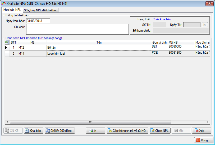 Trong một lần khai báo, bạn có thể bổ sung nhiều chứng từ khác nhau bằng cách nhập các dòng khác nhau vào danh sách. Nhập xong thông tin bạn nhấn vào nút “Ghi” và “Khai báo” để gửi lên cơ quan Hải quan.