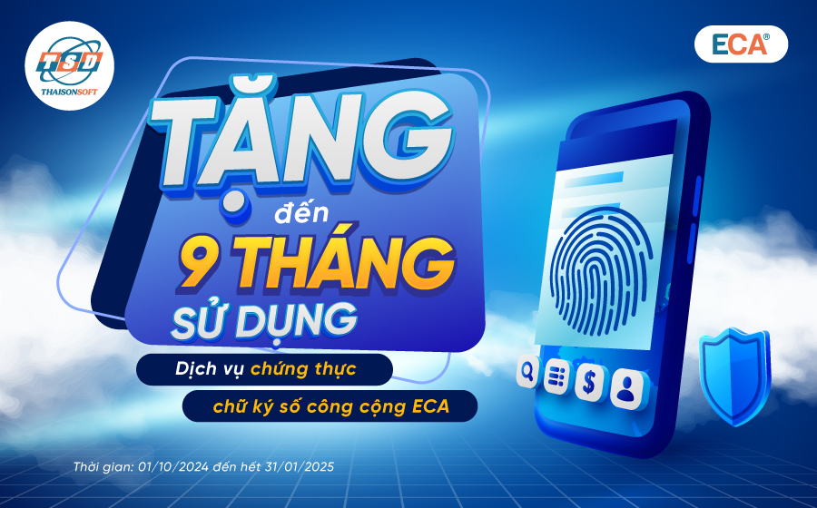 Nhân ngày “Chuyển đổi số quốc gia” hàng năm, Công ty Phát triển Công nghệ Thái Sơn - ThaisonSoft triển khai chương trình ưu đãi hấp dẫn cho khách hàng, doanh nghiệp, cá nhân khi đăng ký sử dụng Dịch vụ chứng thực chữ ký số công cộng ECA.