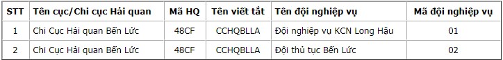 - Đóng trên hệ thống đối với mã Hải quan của các Đội nghiệp vụ KCN Long Hậu – 48F1và Đội thủ tục – Chi cục Bến Lức – 48F2;