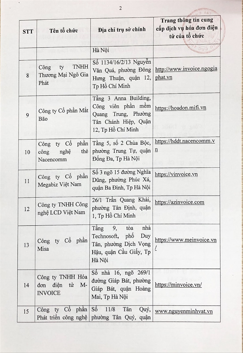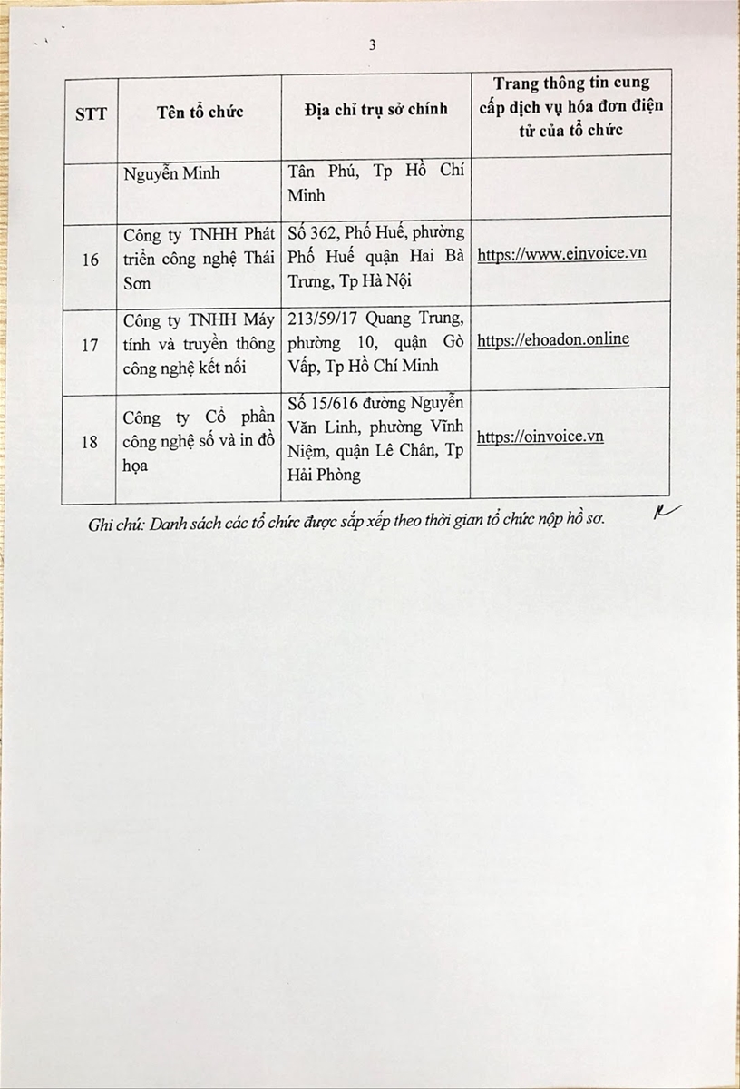 - Thông tin về dịch vụ hóa đơn điện tử được công khai trên trang thông tin điện tử của tổ chức;