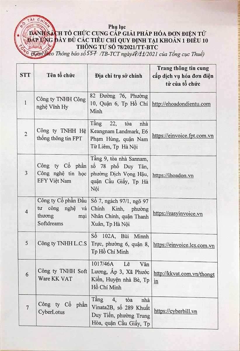 Tổng cục Thuế công khai thông tin của tổ chức cung cấp giải pháp hóa đơn điện tử theo Thông tư 78